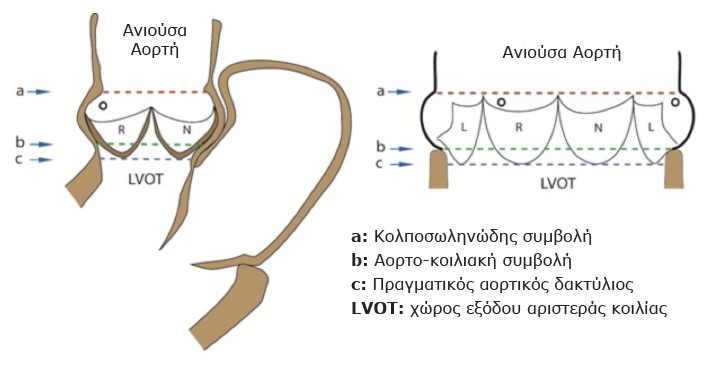 Λειτουργική ταξινόμηση αορτικής ανεπάρκειας. Συντμήσεις: ΑΙ, αορτική ανεπάρκεια; FAA : λειτουργική διάταση αορτικού δακτυλίου; SCA: δακτυλιοπλαστική; STJ: κολποσωληνώδης συμβολή.
