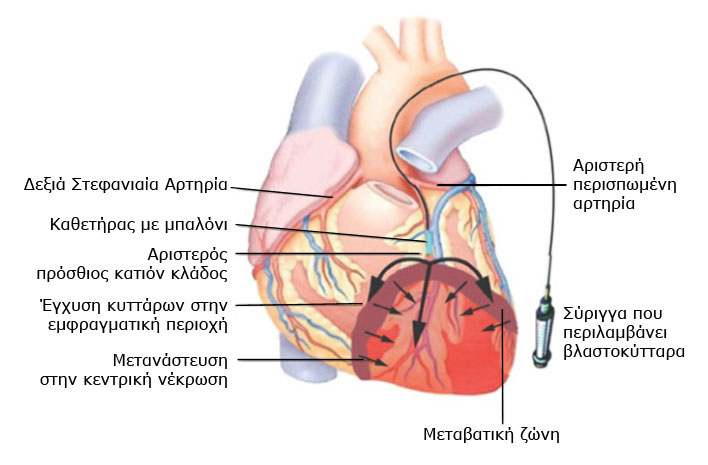 Στις επόμενες εικόνες δείχνεται ο τρόπος χορήγησης των βλαστοκυττάρων στην εμφραγματική περιοχή.